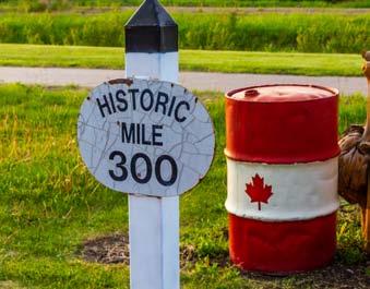 in 1947 the highway was marked with mileposts and many of the towns and lodges along the way became known by their milepost number. even today, many lodges use Historical Mileposts (HM) to refer to their location on the highway.