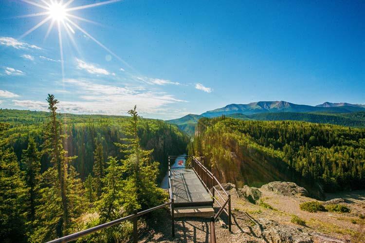 Million Dollar Falls Campground at km 159 has 34 sites, tenting area, picnic tables, and cooking shelters. A boardwalk leads to a lookout above the 60m /196 ft high Million Dollar Falls on the takhanne river. this is the endpoint for the Chinook salmon spawning run in July. t here is plenty of hiking to explore around the campground area.