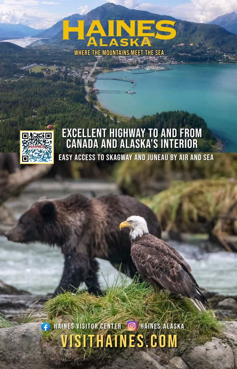 Haines is situated at the upper end of north America’s longest and deepest fjord. it is 14 miles south of skagway and 80 miles north of Juneau.