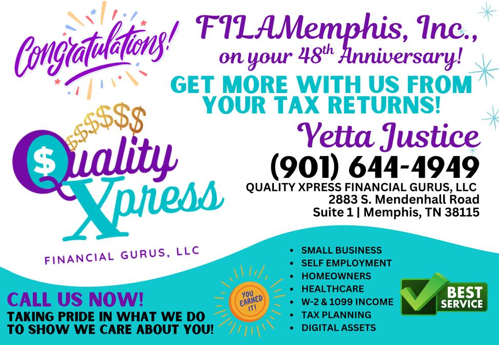 Congratulations to FILAMemphis, Inc. for its unwavering community service, for preserving our heritage, and for keeping our community united. We are truly proud to be part of this wonderful family.