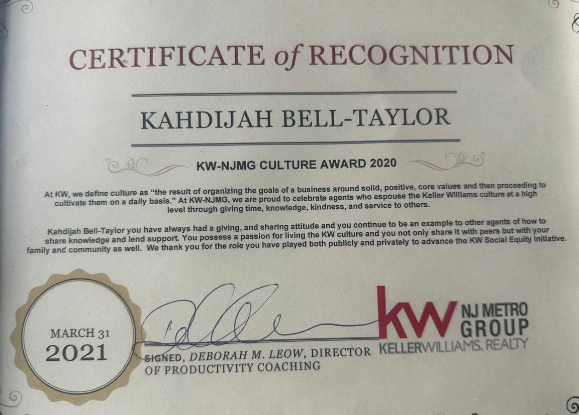 In addition, Kahdijah has also earned designations in KW Communities to further enhance the specific needs of clients in targeted real estate business segments: