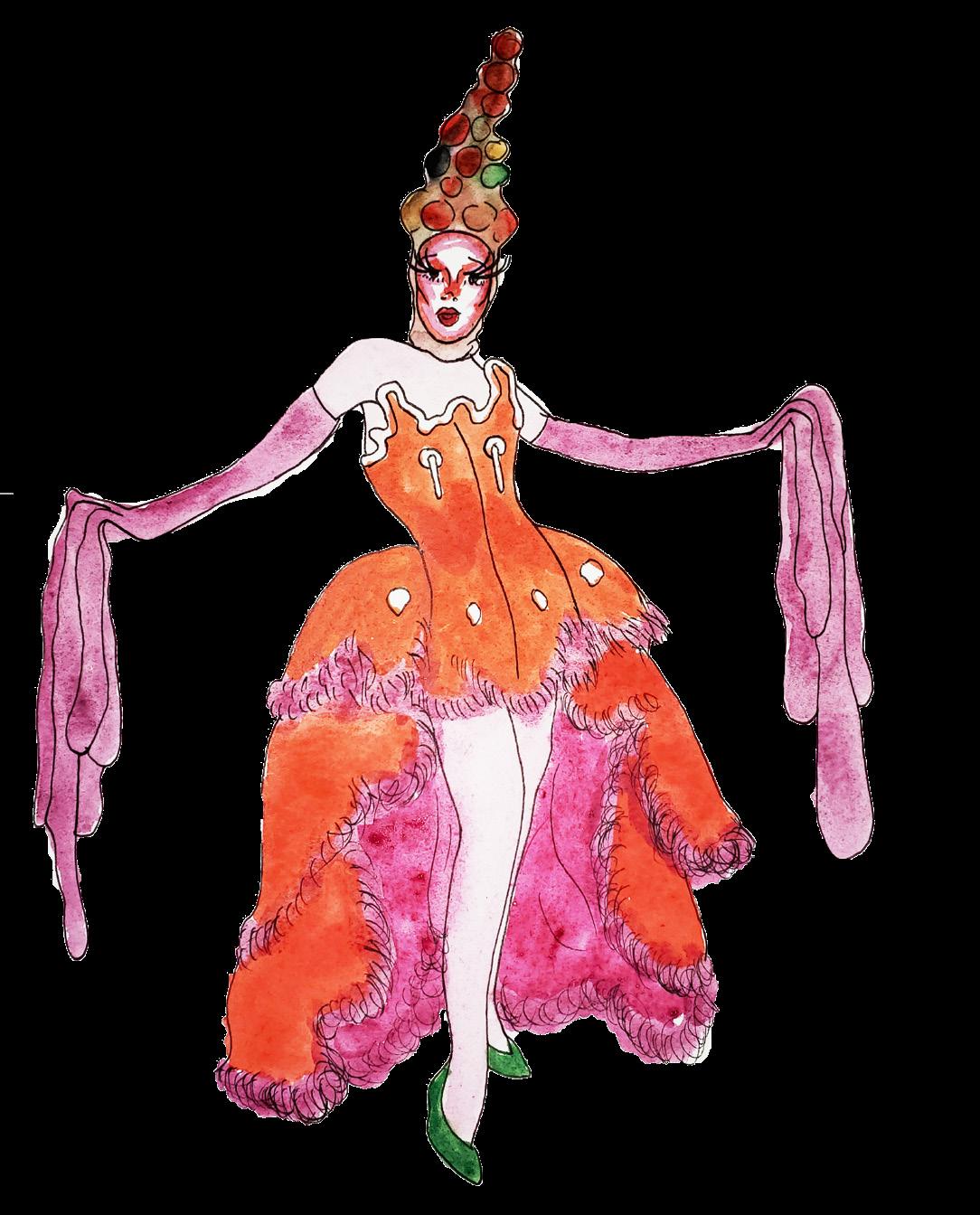Juno BIRCH: A trans woman from Manchester whose drag persona is an alien trying to pass off as a 1960s Stepford wife. They are an illustrator and sculpture which is where their drag persona was born on paper.