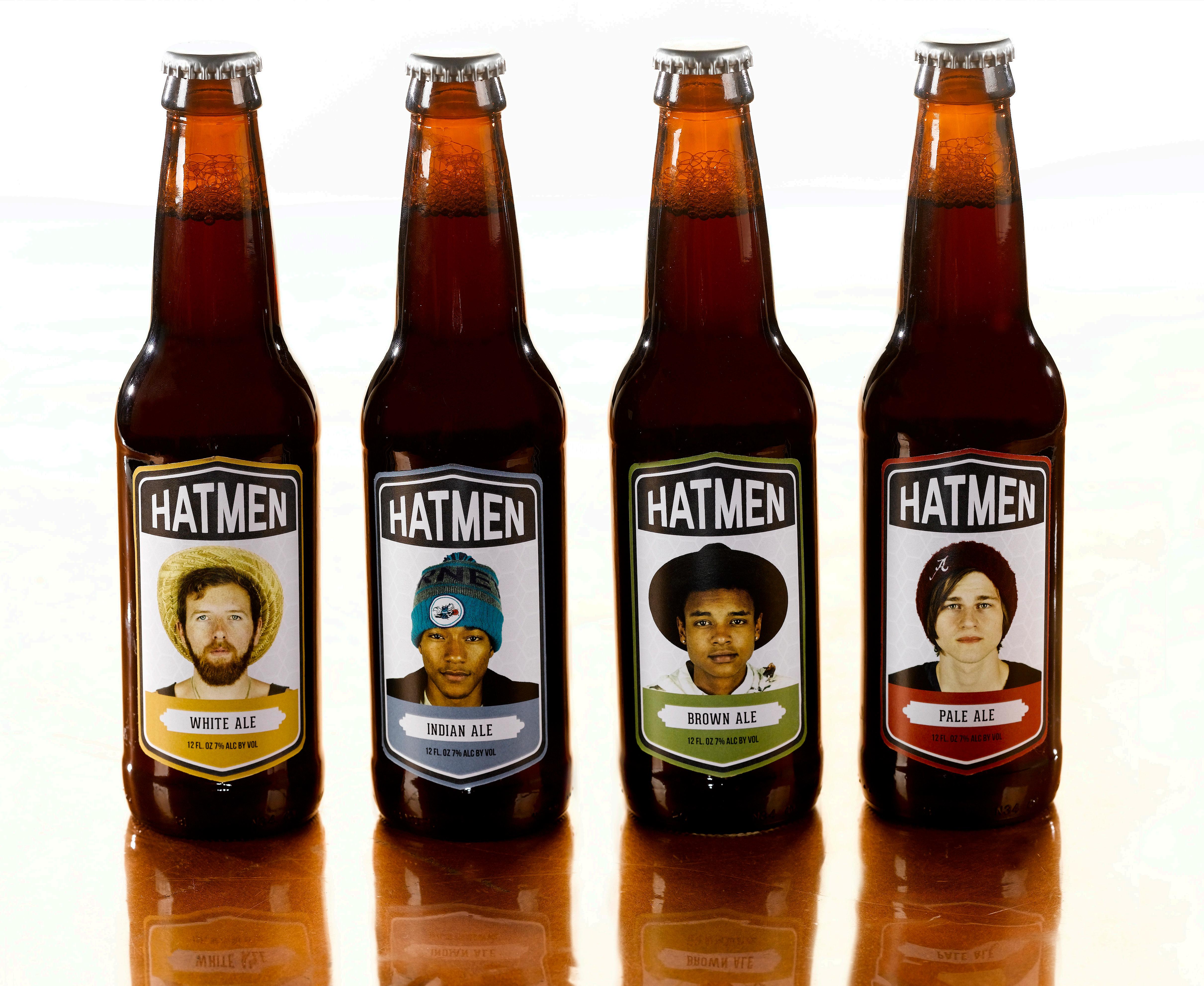 By incorporating men in hats as a branding tool, I was able to create a distinctive and modern brand of beer. Hatmen’s variety four pack contains a White Ale, Indian Ale, Brown Ale and Pale Ale. By the use of color and photography, I was able to categorize each beer giving them there own individual personalities.