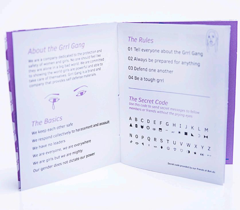 Through this project I was given the opportunity to design something which I have always been drawn to, girl power. As girls we are taught to always rely on others for safety. The modern girl doesn’t have time to be dependent on others. This kit and this company were created to provide girls and women with tools they can use to protect themselves. The name stems from a small subculture online which refers to itself as a girl gang where females give each other advice, support, and style tips. Another big component to the style and name of the brand is derived from the third wave feminist movement in the 90’s called Riot Grrrl.