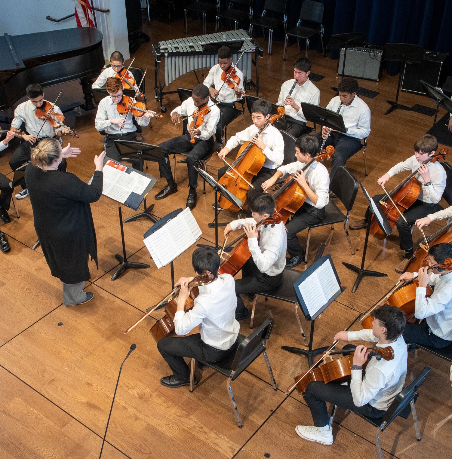 continued with The Commodores’ hit song Brick House, with soloists William Lloyd on tenor saxophone, Alex Zhang on alto saxophone, Cameron Connell on piano, and TJ Cannistraro on bass guitar, and the help of guest musicians Alexander Behn on trombone and Daniel Xie on alto saxophone, the Upper School Jazz Ensemble successfully gave energetic and funky performances. They were followed by the final group of B-Flats soloists; these performances were undoubtedly the highlight of the concert; Davi Ribeiro delivered a stunning performance of John Legend’s All of Me, and the audience rose to their feet for a standing ovation as soon as he sang his last notes. He was followed by another amazing performance of Zach Bryan’s Revival sung by David LoGrasso, and Will Kelly finished off with the Lumineers’ Leader of the Landside, which brought the audience to their feet once again. The concert ended with an impressive combined ensemble performance of Come Celebrate Belmont Hill. Members of the B-Flats, Orchestra, and Upper School Jazz Ensemble provided a fitting conclusion to a fantastic concert that showcased the immense talent of Belmont Hill’s students. Overall, the concert was a huge success, demonstrating the Performing Arts Department’s dedication to fostering musical excellence and creativity in its students. The audience left feeling energized and inspired by the impressive performances and musical diversity of the show. ☐