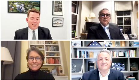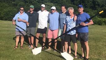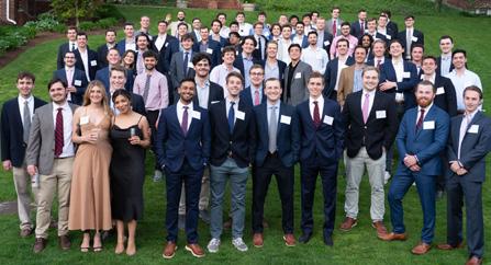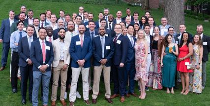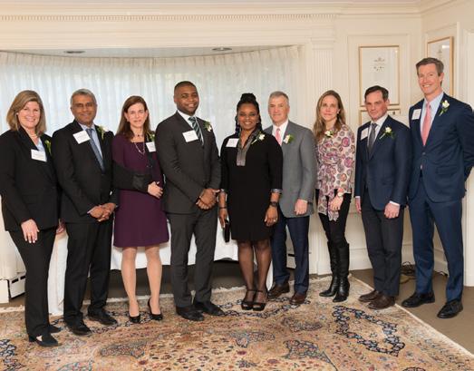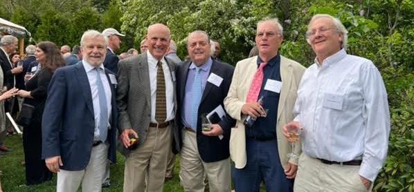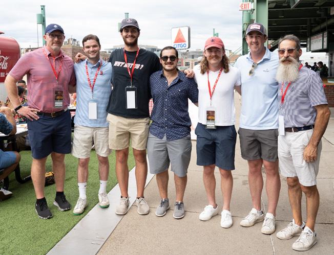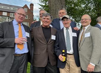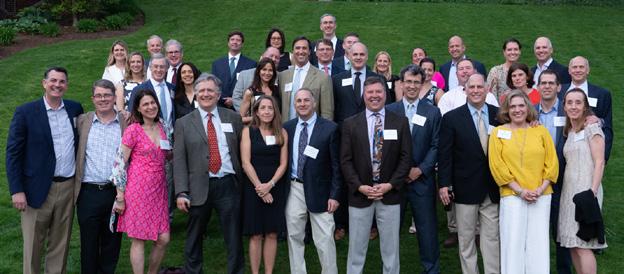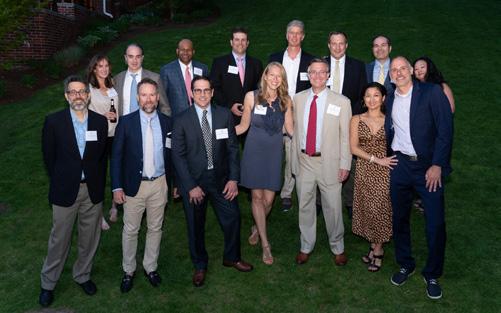 Seated: Emmett Lyne ’77, Jill Shah, Amy Madden, and Greg Paul ’09. Standing: Donnell Patterson, Will Kelly ’23, Greg Schneider, and Jon Biotti ’87.