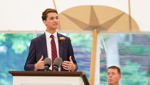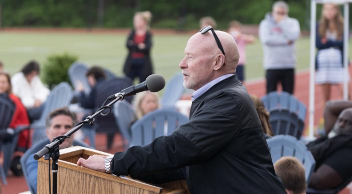 President of the Board of Trustees Jon Biotti ’87, P ’23, next provided an introduction to Greg Schneider, Ronald M. Druker ’62 Head of School. “Greg leads the School with a steady hand,” Mr. Biotti said, “always striving to make Belmont Hill a better version of itself…while at the same time, holding onto the timeless values and culture at its core.”