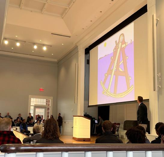 Note that it never takes long for my first nautical reference in a Belmont Hill speech—in this case, my choice of the verb to navigate. It is amazing how frequently I drift into metaphors about navigating choppy waters or suggesting that our long-term course will be true. One might argue that this is the fundamental metaphor of Belmont Hill when we consider our school symbol, the sextant. When I was offered the job at Belmont Hill, my aunt was the first one to present me with this miniature sextant, as her two sons were proud Belmont Hill graduates. Dr. Melvoin left a few sextants in his office in the spring of 2018 as well. Since then, I have thought about the symbol rather a lot—seeing it on sports jerseys, websites, and banners everywhere. I suspect we will see many more sextants on banners as we approach our Centennial.
