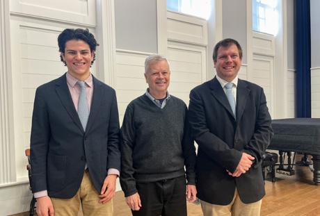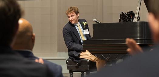 Next, the audience was treated to the first of three videos featuring alumni and current and past faculty. Following the video, the very gifted Will Kelly ’23 wowed the audience with a remarkable performance of the Billy Joel classic “Vienna.” Will received a rousing standing ovation from the crowd for his tremendous singing and piano playing.