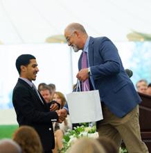 On a beautiful Friday evening this past May, the community gathered to celebrate the launch of the School’s Centennial Campaign. After a lovely reception under the tent on the chapel lawn, guests proceeded into Hamilton Chapel to hear from a number of speakers and one special performer. The evening began with introductions from trustees Emmett Lyne ’77 and Greg Paul ’09. Mr. Lyne stated that it was his honor to officially announce for the first time the goal for The Centennial Campaign for Belmont Hill: $125 million. “This is an ambitious target—a high watermark for the School,” he said. “To put it into context, the last drive’s goal was $75 million. It is a goal that even approaches our endowment total.” Mr. Paul then accentuated the importance of this historic campaign. “Attending Belmont Hill was a transformational experience for me,” he explained. “I am beyond thrilled that this campaign will invest in the next generation of Belmont Hill students, students who will then become part of the best alumni community around.”