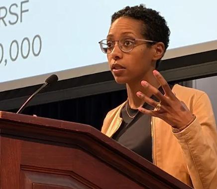 division of the country’s armed forces. She was introduced by students Yusuf Ibrahim ’25 and Babikir Saeed ’26, who each had family members in the affected areas. Both students discussed the impact the war had on their families and the destruction inflicted on their homes.