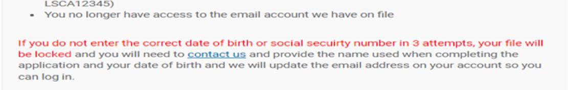 If you’ve changed your email address, and the new email address in not in your MyBELS account, you will not be able to login. You can access your account by clicking on “Forgot Password” then - Start Account Recovery and enter your date of birth, social security number and the email address that you want the reset password email to go to. Once you get in, you can change your email address.