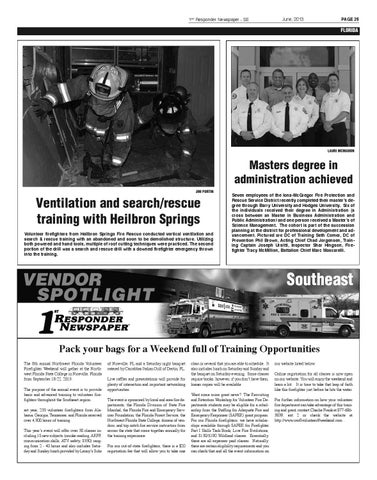 Pack your bags for a Weekend full of Training Opportunities The 8th annual Northwest Florida Volunteer Firefighter Weekend will gather at the Northwest Florida State College in Niceville, Florida from September 18-22, 2013. The purpose of the annual event is to provide basic and advanced training to volunteer firefighters throughout the Southeast region. ast year, 235 volunteer firefighters from Alabama, Georgia, Tennessee, and Florida received over 4,300 hours of training. This year’s event will offer over 30 classes including 15 new subjects (smoke reading, ARFF, communication skills, ATV safety, S330) ranging from 2 - 40 hours and also includes Saturday and Sunday lunch provided by Lenny’s Subs