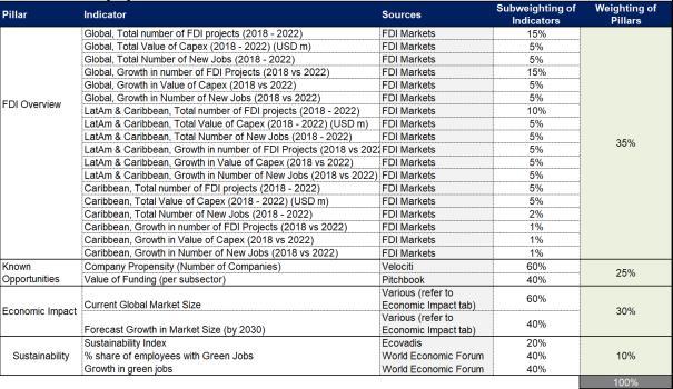 A SWOT analysis was undertaken for each focus sector to highlight the Strengths, Weaknesses, Opportunities, and Threats relating to attracting FDI to Belize. Furthermore, using OCO’s Competitiveness Framework, OCO collected a range of data, which included 59 different indicators, to benchmark the country against main competitors within these prioritized sectors.10