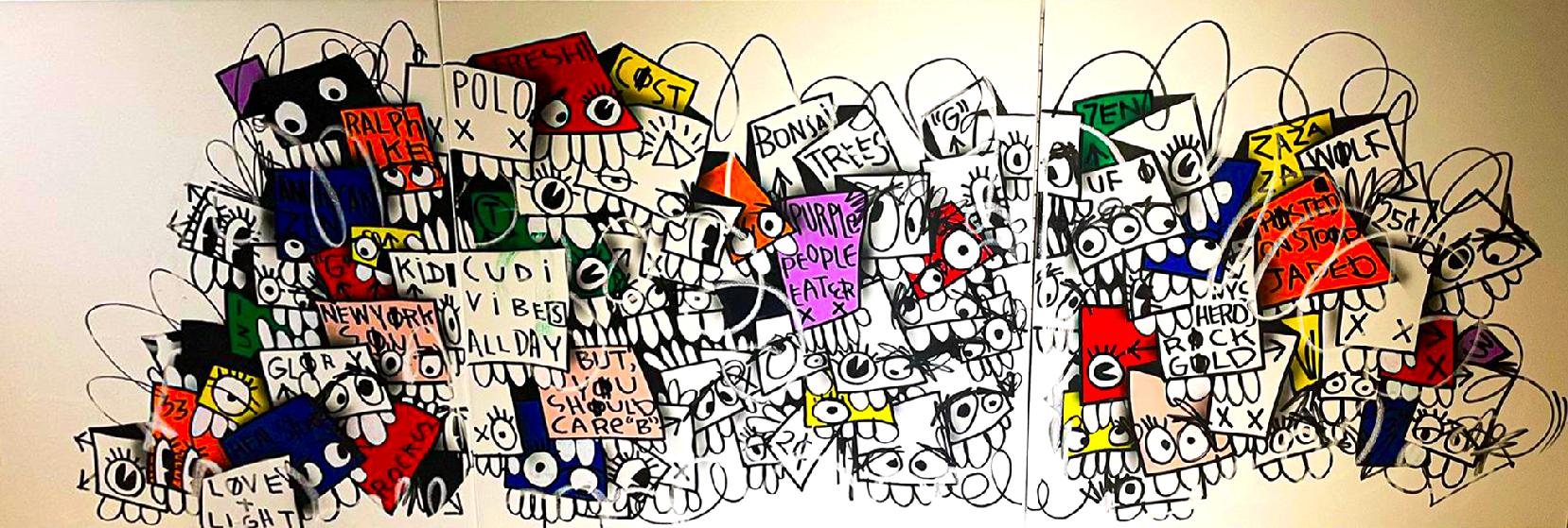 Flore | “Three Better Than One” | Acrylic and oil on canvas | 120 x 360 cm | 2021 5