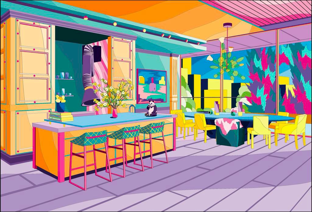 Michael Callas | Living Room With Green Walls | Spray paint on canvas | 140 X 210 cm | 202219