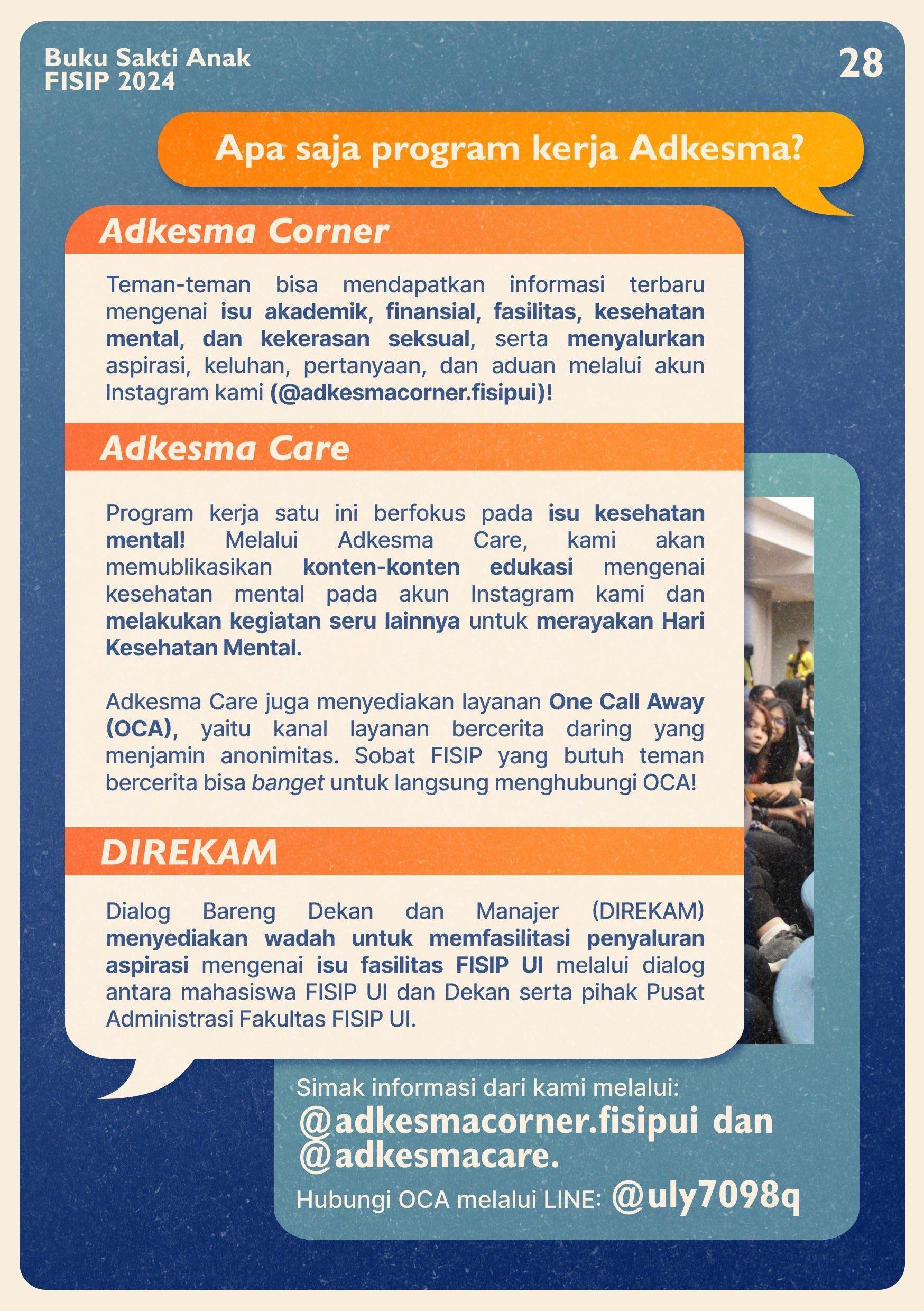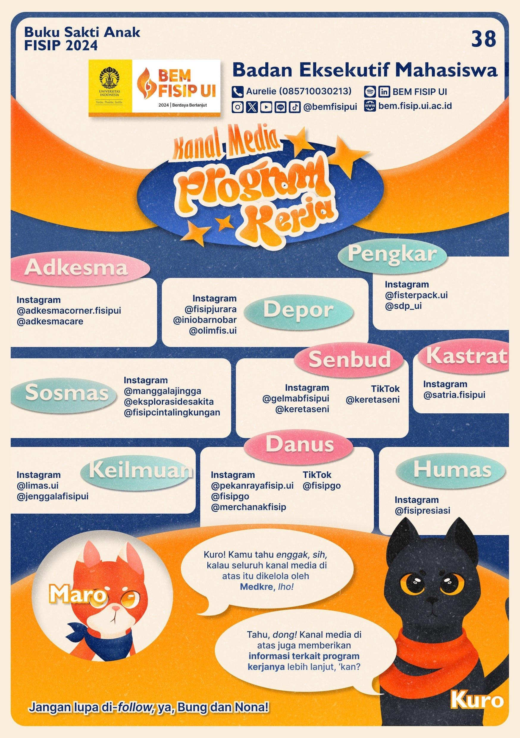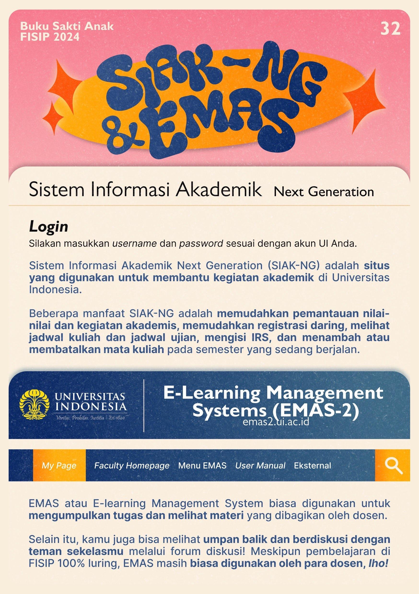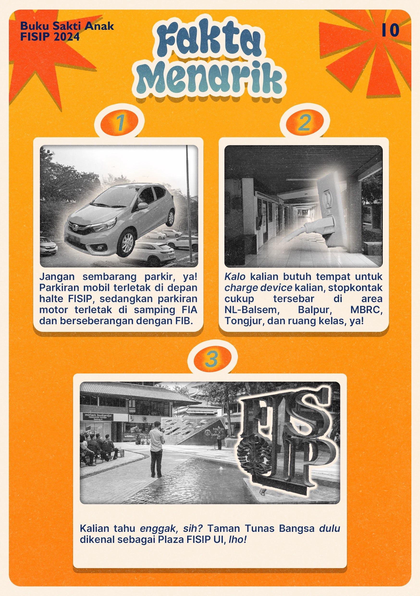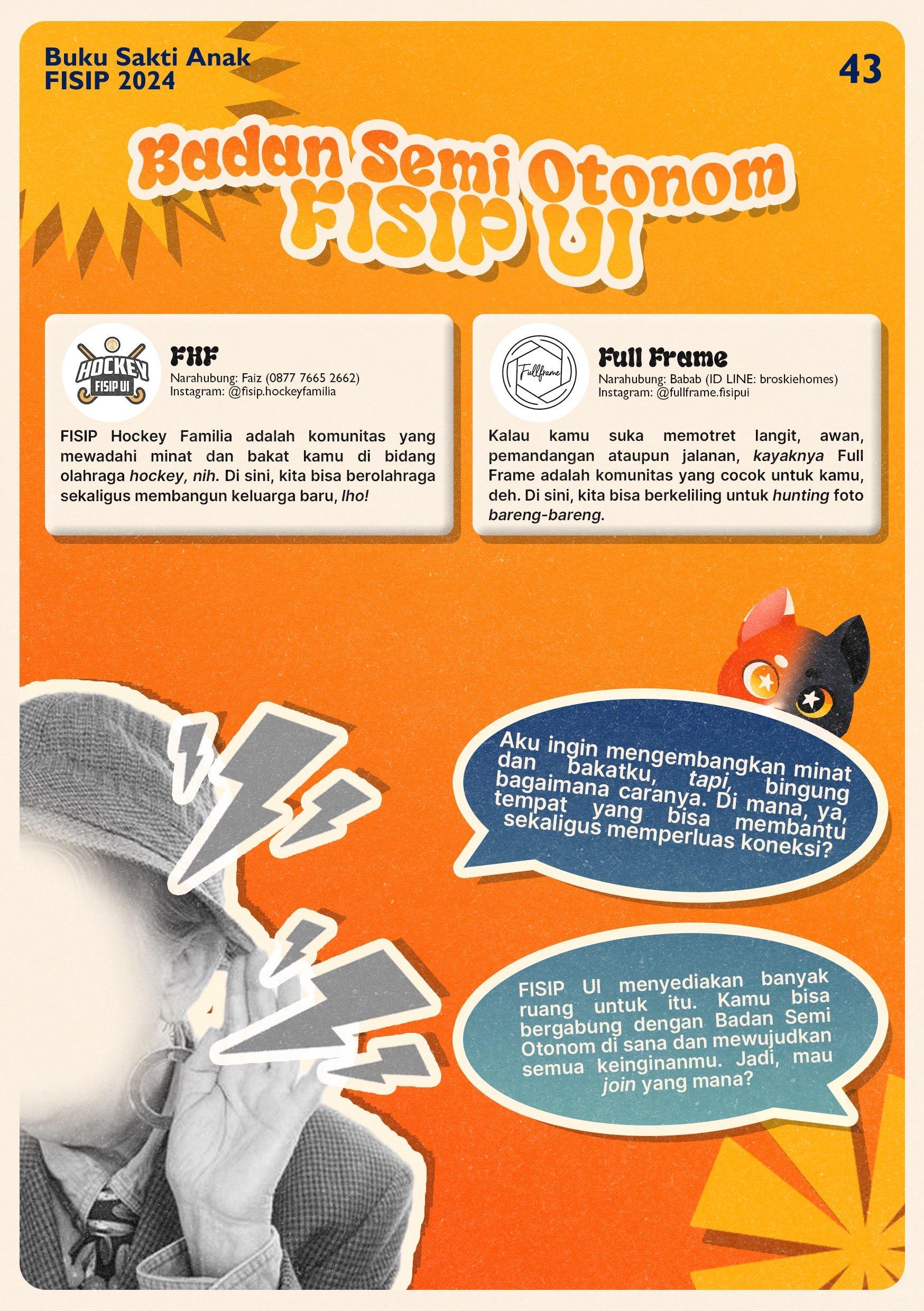 Selamat datang, Bung dan Nona, ke dalam keluarga besar FISIP UI! Tentunya banyak hal yang harus kamu ketahui tentang lingkungan FISIP UI dan segala seluk-beluknya. Namun, jangan khawatir! Buku Sakti Anak FISIP 2024 hadir untuk mengawal perjalanan pertama kalian dalam lingkungan FISIP UI!
