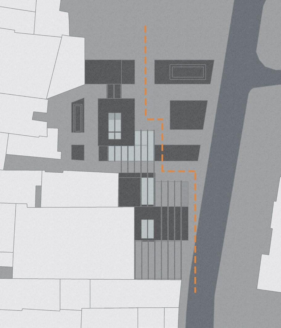 perspective of viewing the site, I realised that the building is a pitch roof structure. Therefore, I wanted to extend the typology and also extend the movement of people walking through the tunnel.