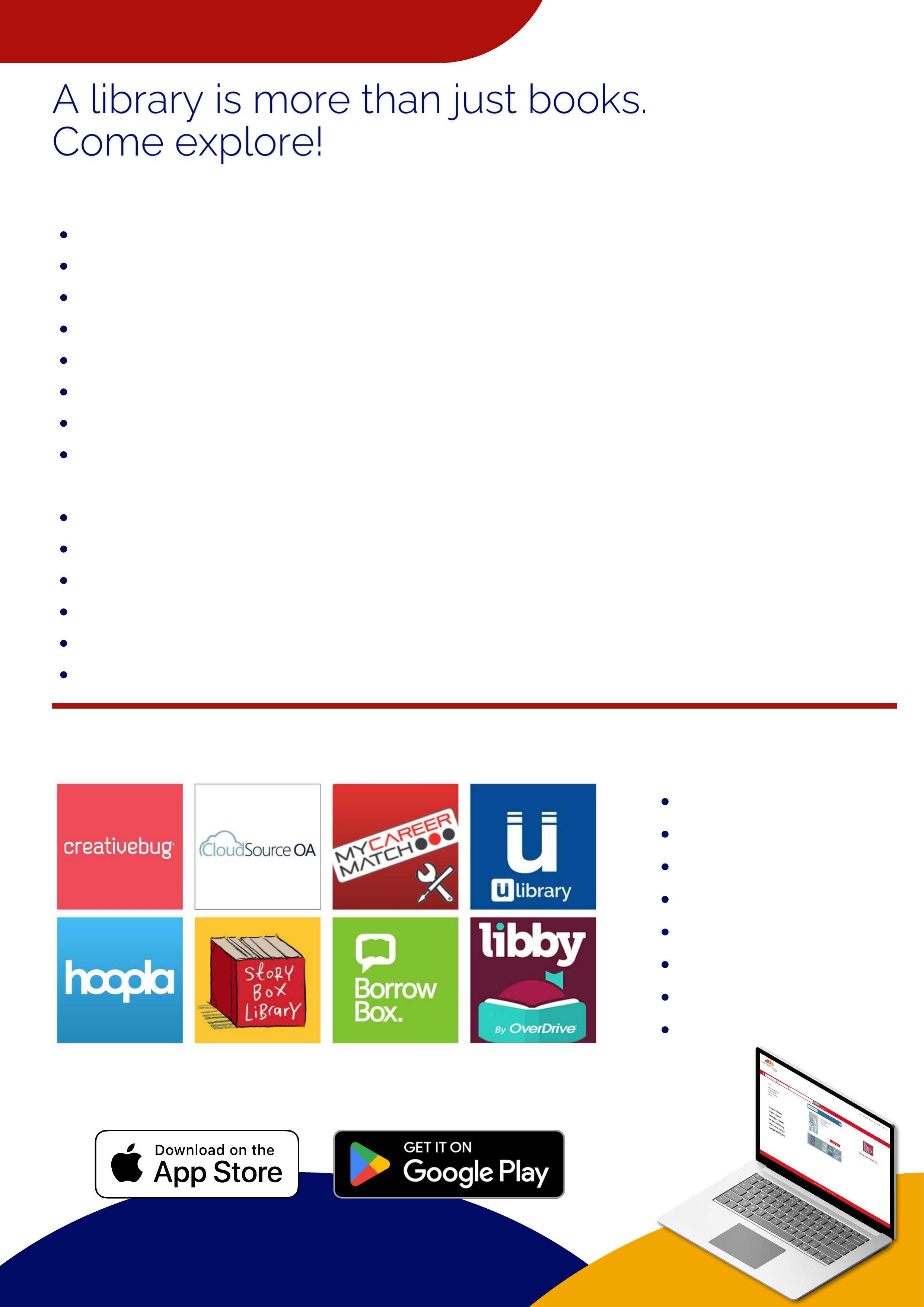 Borrow books, audiobooks, comics, magazines, scholarly articles, and shows through our supported apps.