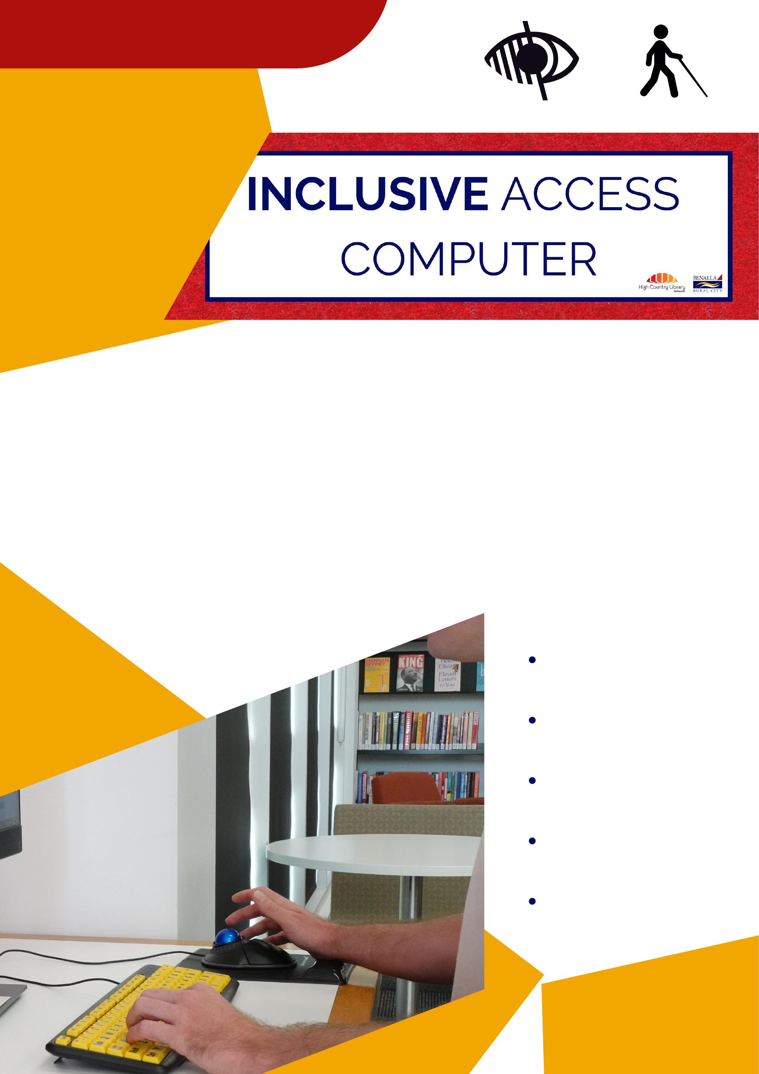 Print disability friendly accessibility options on all public computers, including text magnifier, contrast, and screen reader