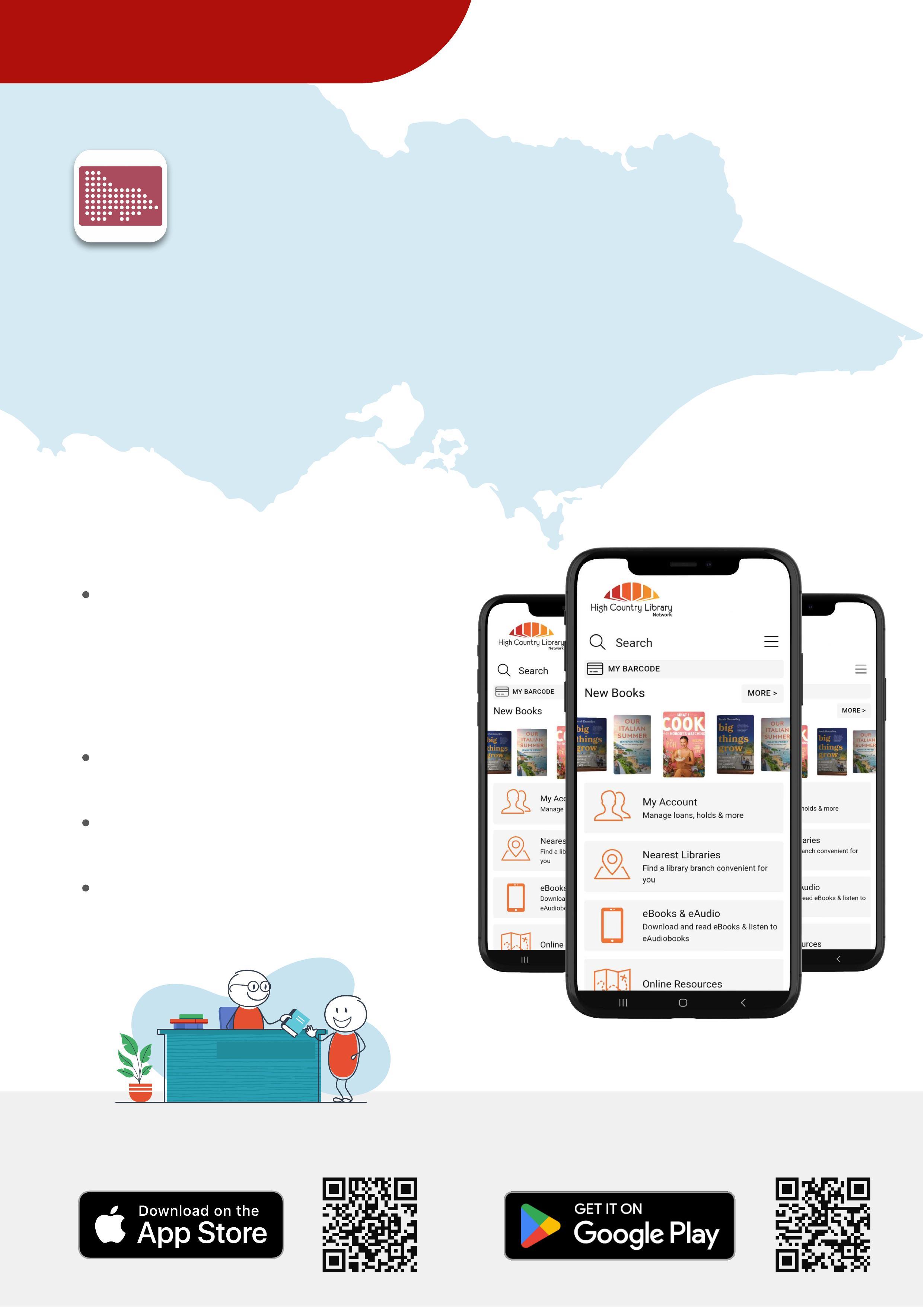 Search 'Libraries Victoria' in your app store, or scan the QR Code.