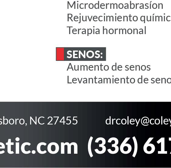 GREENSBORO LATINO no asegura, garantiza o respalda de ninguna manera los productos o servicios que aparecen en los avisos publicados en esta revista. Está prohibida la reproducción total o parcial de artículos, sin la autorización del equipo editorial de GREENSBORO LATINO.
