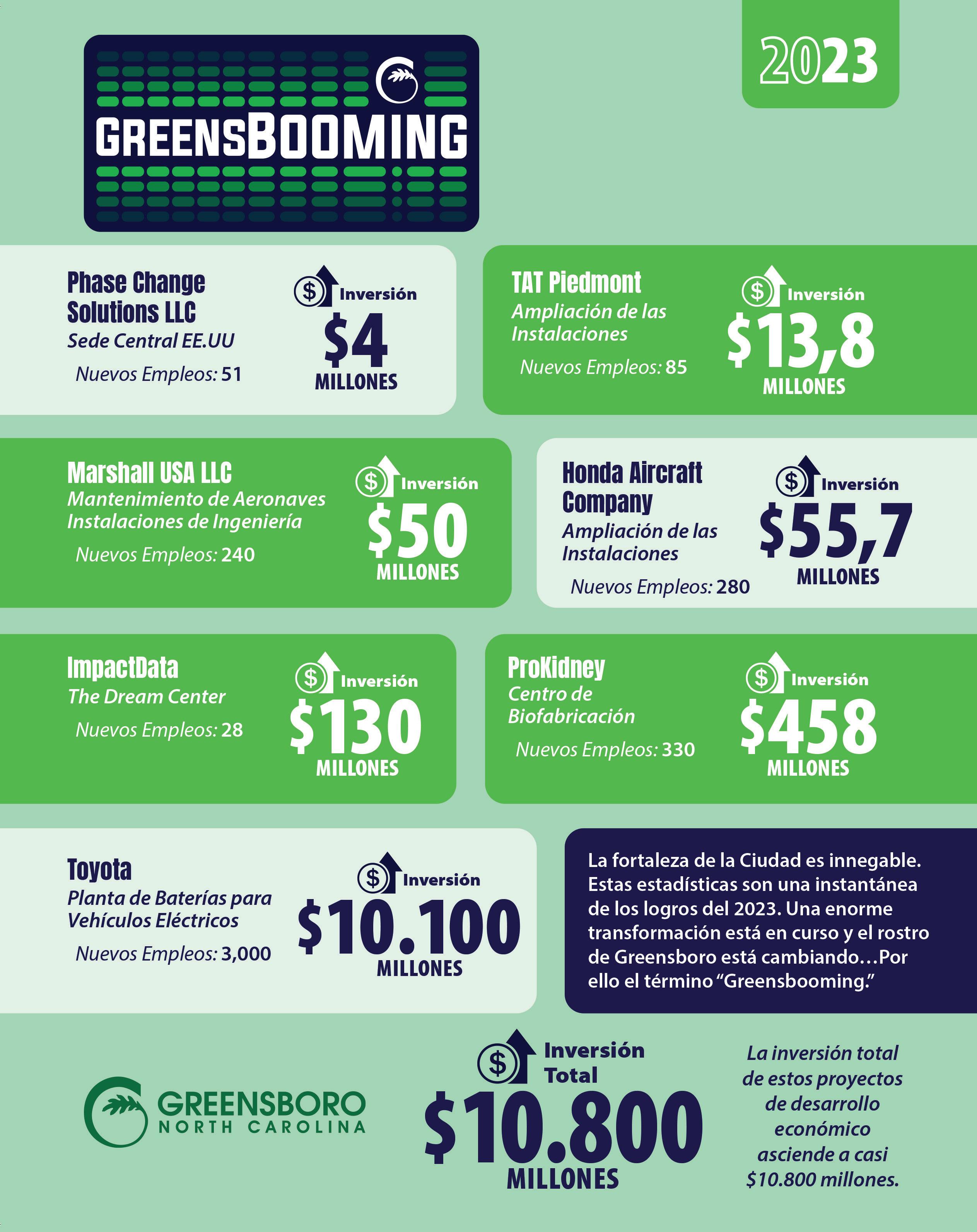 Para promover una mejora de los ingresos de los hogares, el Ayuntamiento está impulsando enérgicamente un panorama de desarrollo económico positivo mediante la retención de las empresas y los puestos de trabajo actuales que podrían haberse trasladado fuera de Greensboro (Volvo, Syngenta, HondaJet, etc.) y la atracción de nuevas empresas y puestos de trabajo a nuestra comunidad (Toyota, Boom, ProKidney, etc.). El Ayuntamiento se está centrando en empleos que pagan más que un salario digno para impulsar mejor las oportunidades económicas de nuestros residentes.