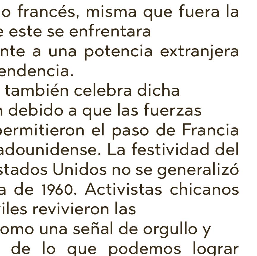 muy dañina”, pero también muy compleja. “No siempre es dañino que se tomen elementos de otra cultura ni se considera como apropiación, por lo que puede ser difícil distinguirla”. “El problema aparece cuando, en lugar de hacer el trabajo de tratar de comprender y respetar las culturas y las luchas de la gente, se descarta la apropiación cultural calificándolo como un tema ‘trivial’”, puntualiza. Finalmente, en un artículo publicado por la organización de medios públicos WBUR, sobre lo que realmente significa el Cinco de Mayo para un mexicano, la periodista María García concluye: “ Si no sabes o no te importa lo que realmente celebra el Cinco de Mayo, si no has pasado algún tiempo pensando en tus propios prejuicios contra los mexicanos, si no conoces la historia de los linchamientos y la discriminación sistémica contra los mexicanos en este país, si evitas las conversaciones sobre inmigración o entras en ellas de mala fe, si no conoces el coste humano que supuso para los mexicanos cambiar algunas leyes laborales fundamentales en este país, o si no tienes ningún amigo mexicano en tu vida, quizá no