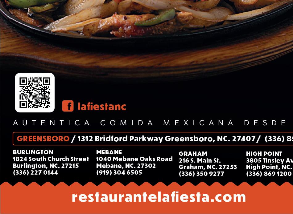 GREENSBORO LATINO no asegura, garantiza o respalda de ninguna manera los productos o servicios que aparecen en los avisos publicados en esta revista. Está prohibida la reproducción total o parcial de artículos, sin la autorización del equipo editorial de GREENSBORO LATINO.