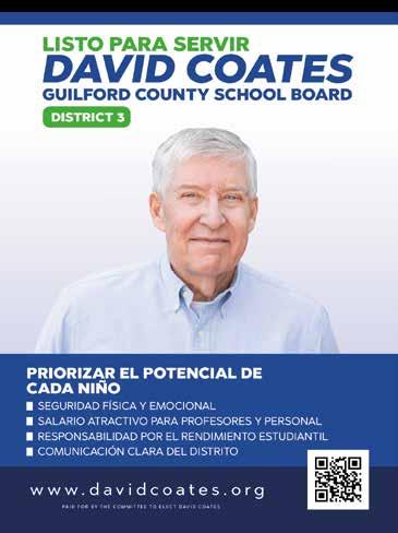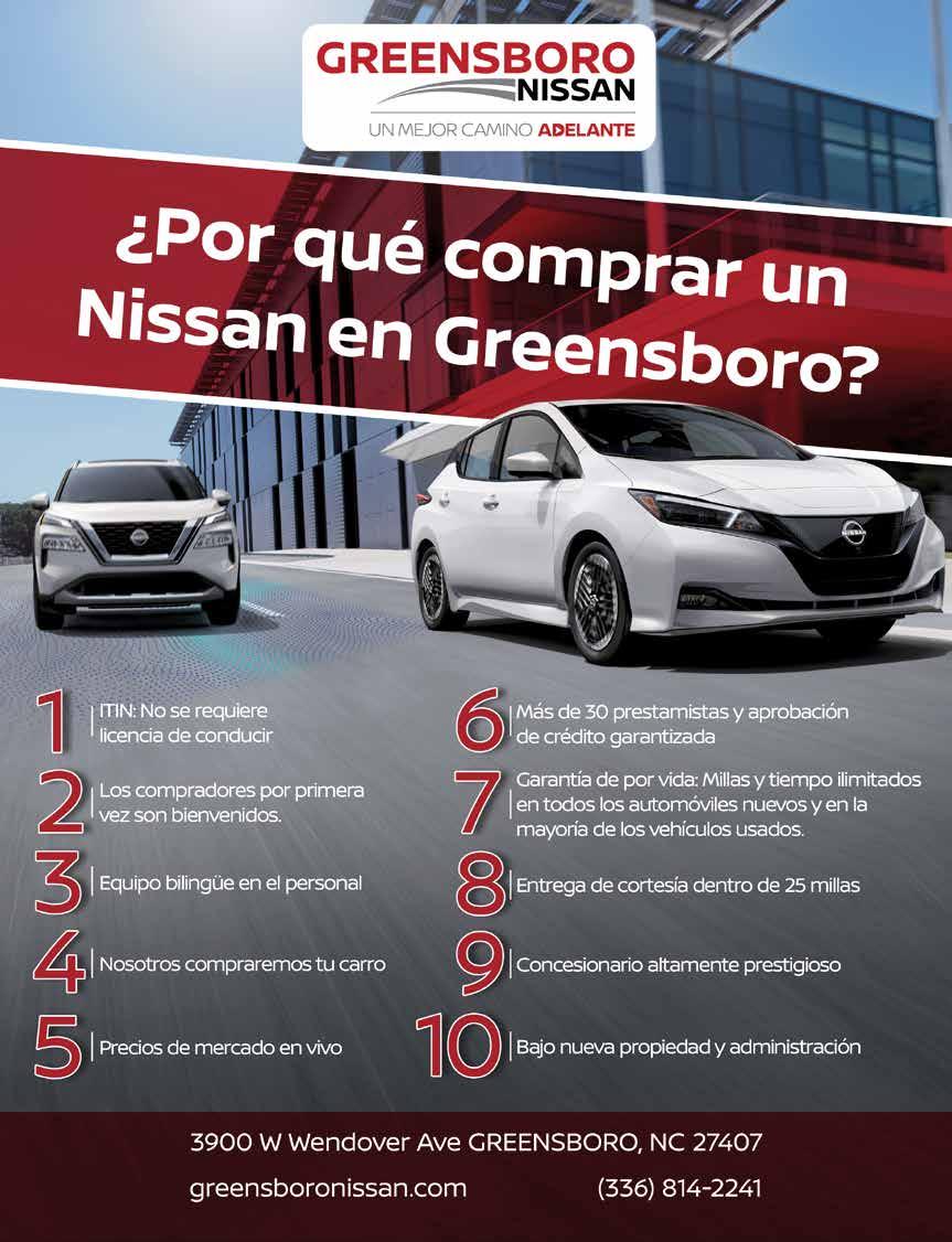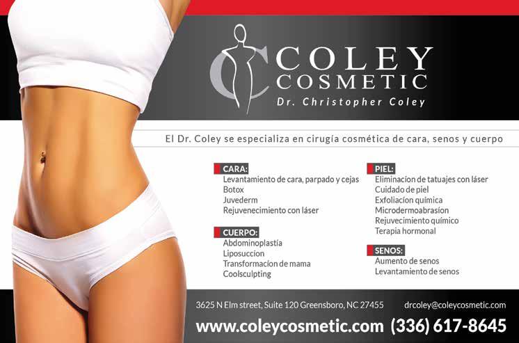 GREENSBORO LATINO no asegura, garantiza o respalda de ninguna manera los productos o servicios que aparecen en los avisos publicados en esta revista. Está prohibida la reproducción total o parcial de artículos, sin la autorización del equipo editorial de GREENSBORO LATINO.