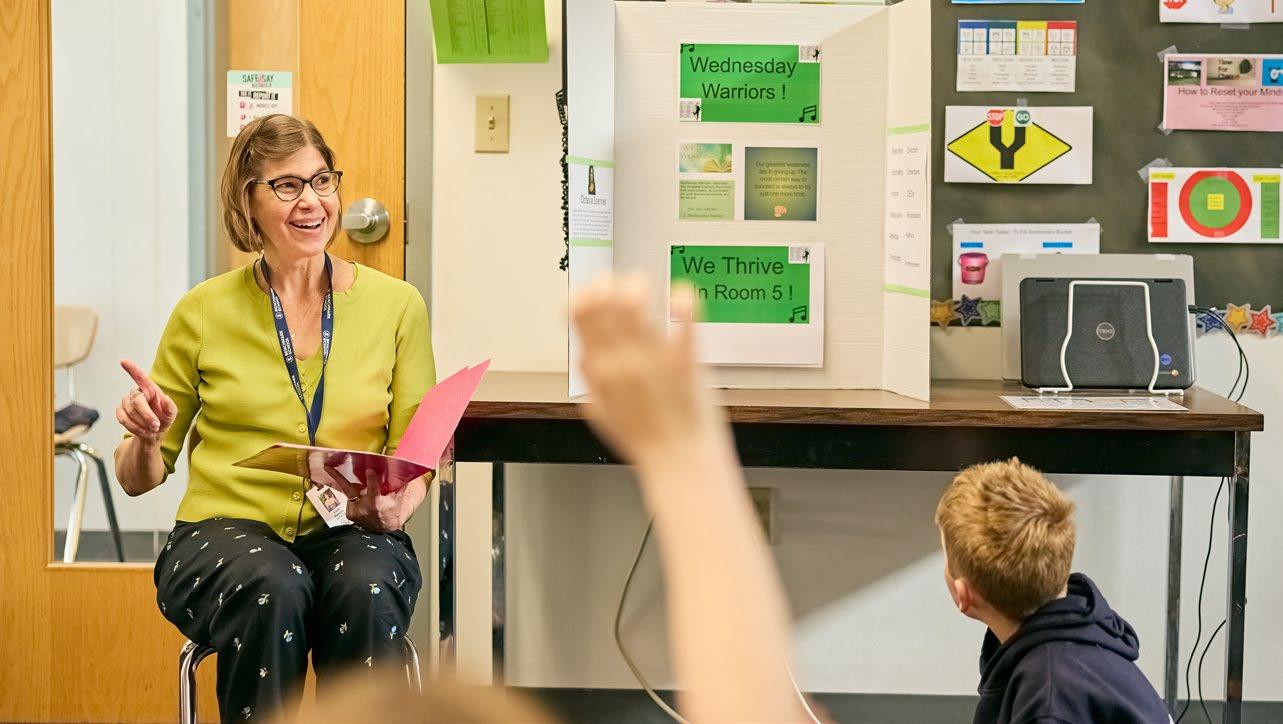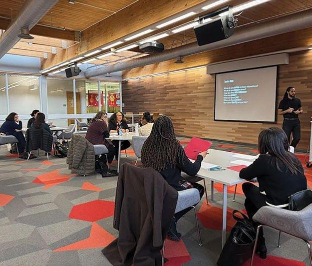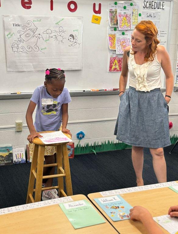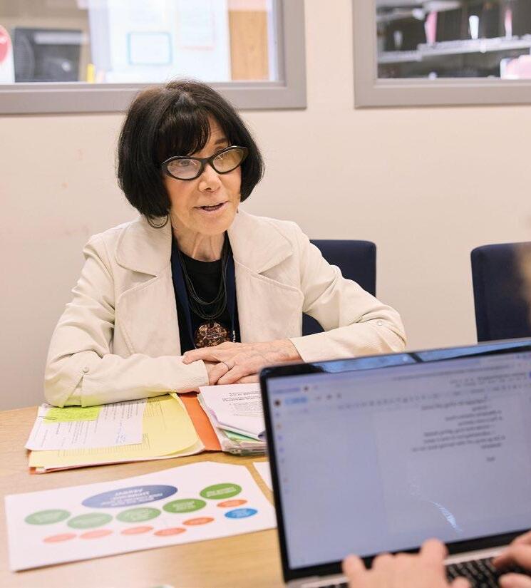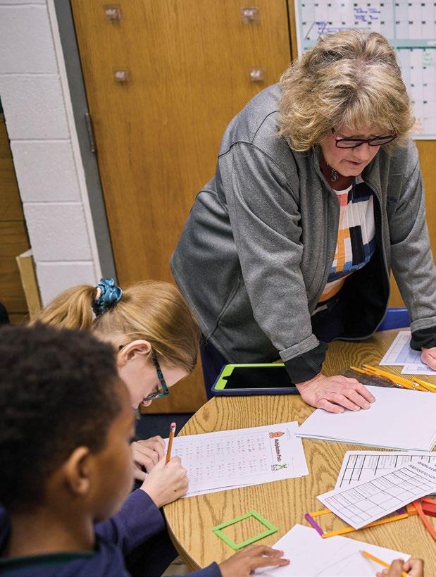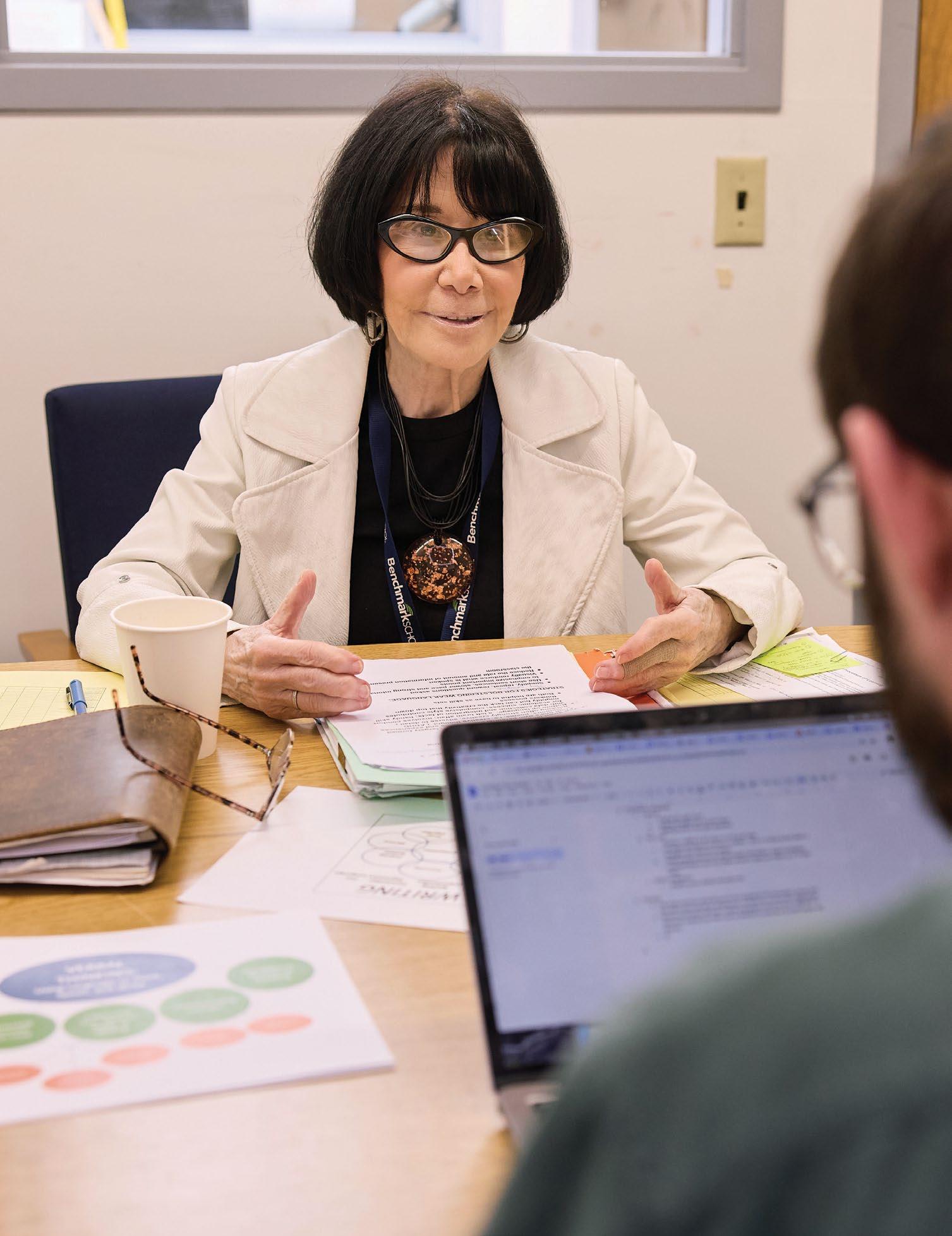 Leslie Stein meets with teachers to share information about developing learning profiles. See more about her work on page 32.