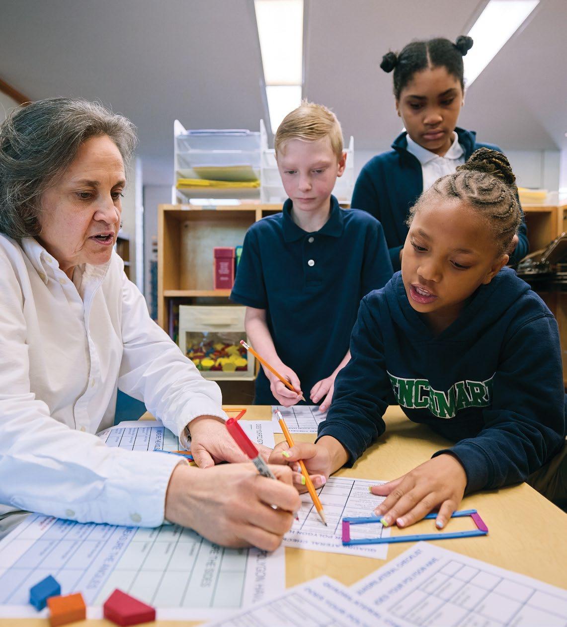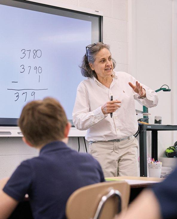 Susan Null discusses math with Ryan Hill ’30, Quinn Pierson ’30, and Quinn Knight ’30. See more on page 26.