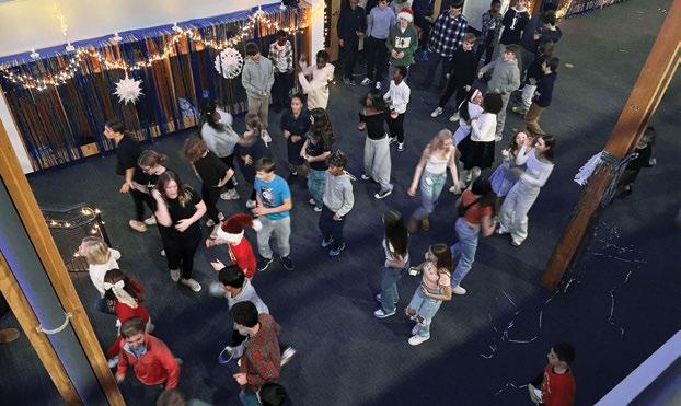 and took the selections to mentor groups for a vote. The committee also designed and created a range of promotional posters that were posted around the school and included in the Weekly Announcements. For each dance, the respective 7th and 8th grade committee members created possible themes and took those to mentor groups for a vote as well. The committees also worked closely with Sam Gerlach (our own DJ) on song selections and even created a game wherein students would get punches on a card for dancing to certain songs and earned prizes.