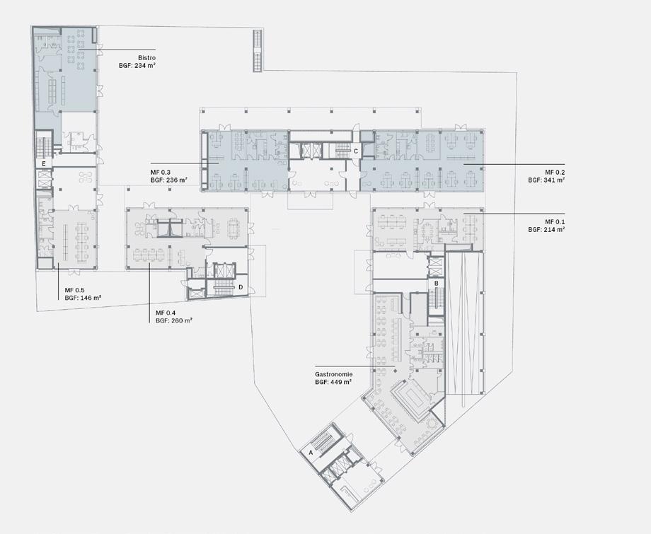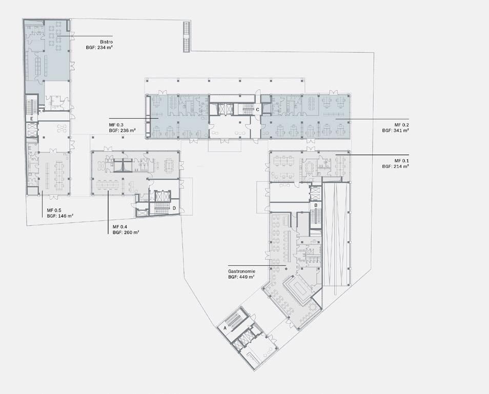 eine Fläche für produzierendes Handwerk vorgesehen, rechts eine offene Büroeinheit.
