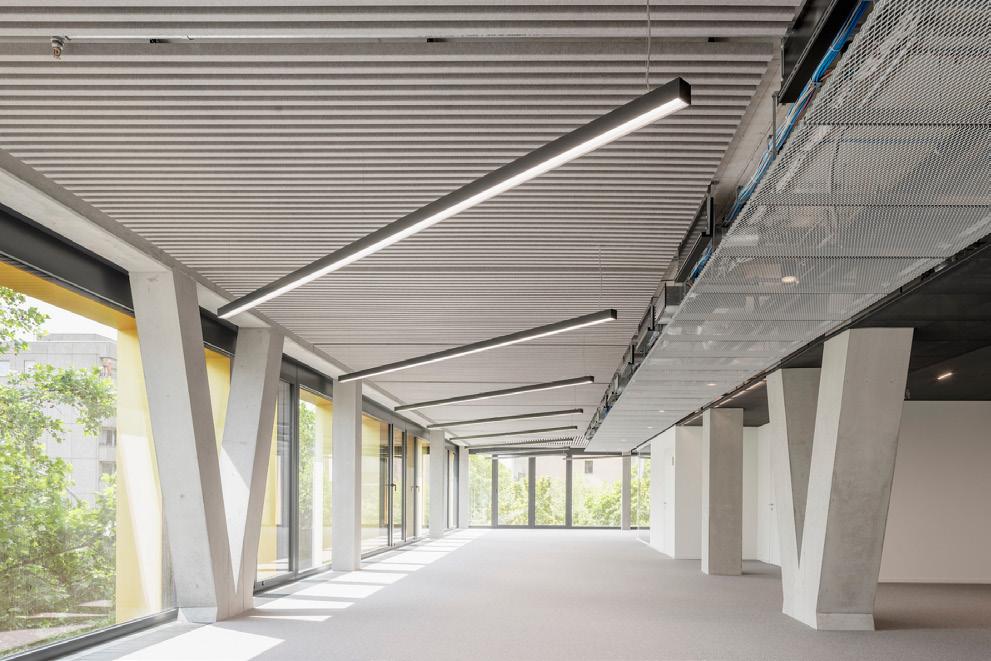 In den Obergeschossen befinden sich helle, einzelne Künstlerateliers, die kreatives Arbeiten und Austausch fördern. Die flexibel nutzbaren Räume ermöglichen gemeinschaftliches Arbeiten und Rückzugsmöglichkeiten. Die Raumeinheiten werden innerhalb des bestehenden Rasters angeordnet, wobei die historischen Stützen und Kappendecken bewusst sichtbar bleiben und somit den industriellen Charakter des Gebäudes unterstreichen.