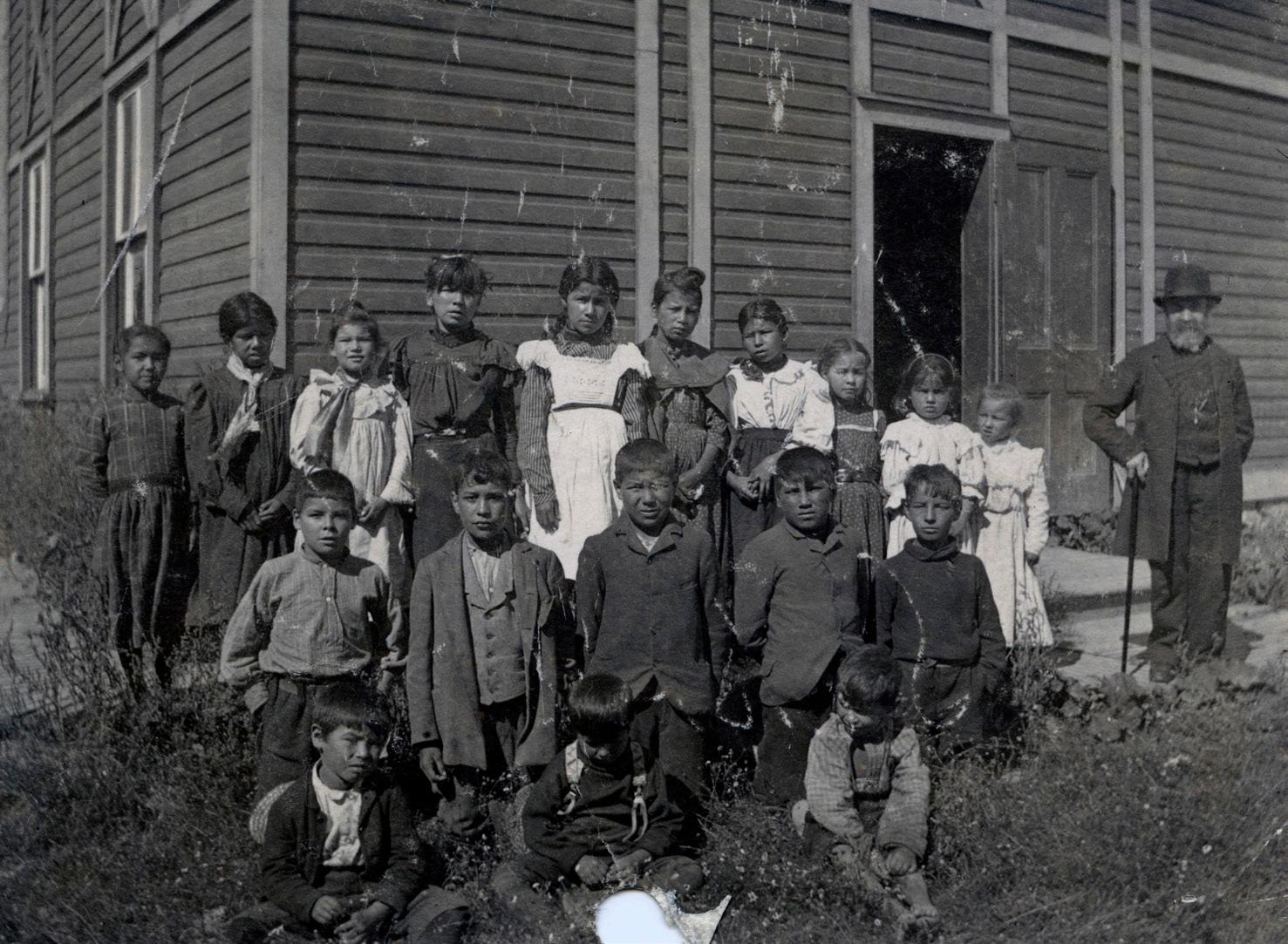 UCCA 1990.162P1480 Children standing in front of the old school at the Rama Indian Mission