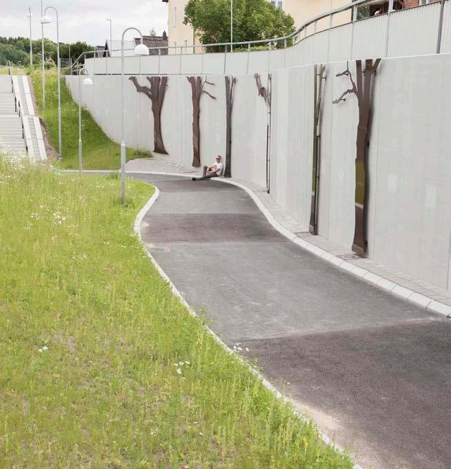 Concrete slabs – with or without steel frames: Artistic design and expression in combination with functionality. For a project in Blå Parken in Upplands Väsby, Benders supplied concrete slabs with steel frames.