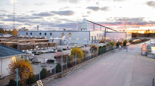 Bålsta. Produktion av markoch takprodukter ger möjlighet till komplett sortiment. Distribution sker via tåg eller bil till Norge, Finland samt egna enheter i Sverige.