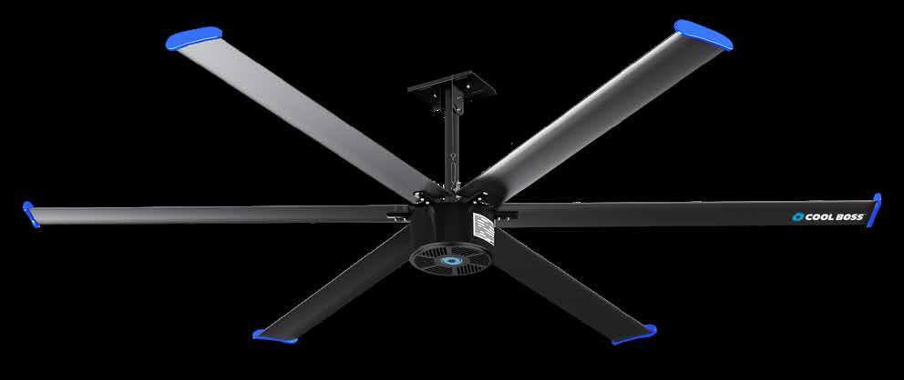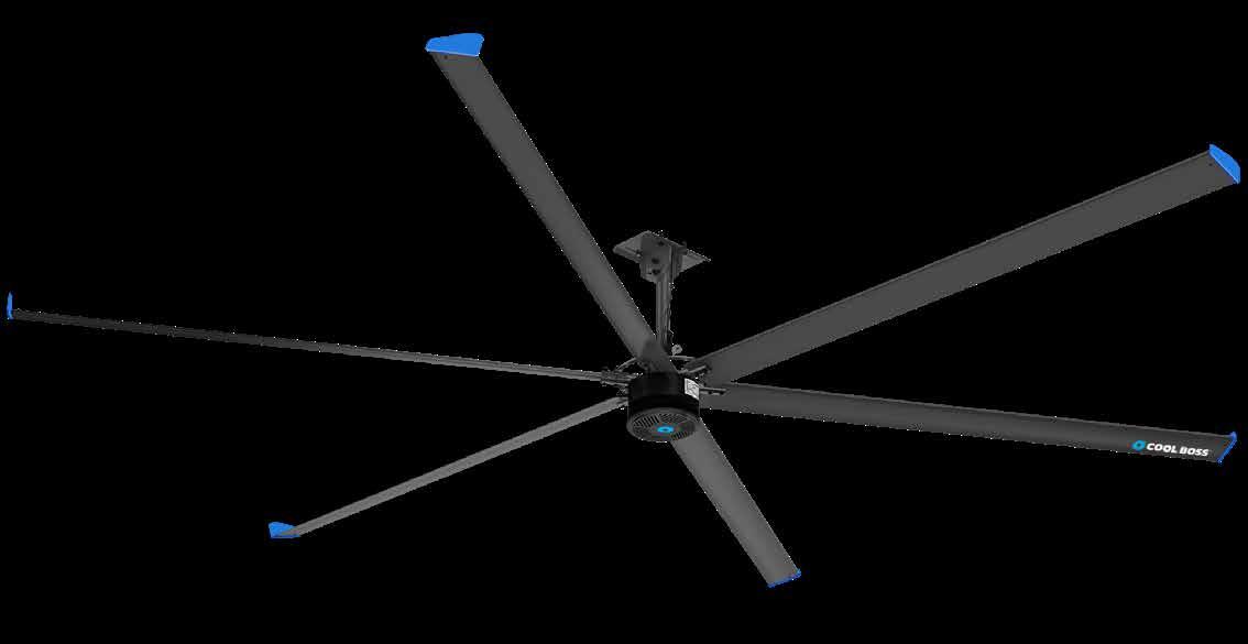 • Max. 90 RPM • Fan Diameter - 11.5 ft. • Air Volume - 148,321 CFM • Max. 60 RPM • Fan Diameter - 20 ft. • Air Volume - 448,496 CFM • Max. 55 RPM • Fan Diameter - 24 ft. • Air Volume - 524,422 CFM • Max. 78 RPM • Fan Diameter - 16 ft. • Air Volume - 360,210 CFM CoolBoss CB11HVLS Industrial HVLS Ceiling Fan SKU 5150201 CoolBoss CB20HVLS Industrial HVLS Ceiling Fan SKU 5150237 CoolBoss CB24HVLS Industrial HVLS Ceiling Fan SKU 5150238 CoolBoss CB16HVLS Industrial HVLS Ceiling Fan SKU 5150202 $