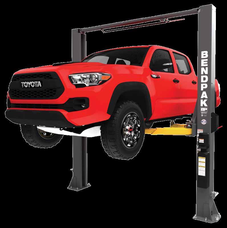 For full product selection visit www.bendpak.com/deals 3 • Max. Rise - 69" • Width - 155" • Height - 170" • Max. Rise - 69" • Width - 155" • Height - 170" • Max. Rise - 69" • Width - 155" • Height - 192" • Max. Rise - 69" • Width - 155" • Height - 170" • Max. Rise - 69" • Width - 155" • Height - 192" TWO-POST LIFTS BendPak XPR-12CL-LTA 12K lb. Capacity Clearfloor Long-Reach Triple-Telescoping Arms SKU 5175258 BendPak XPR-12CL 12K lb. Capacity Clearfloor Triple-Telescoping Arms SKU 5175405 BendPak XPR-12CL-192 12K lb. Capacity Clearfloor Triple-Telescoping Arms 192" O.A. Height SKU 5175407 BendPak XPR-18CL 18K lb. Capacity Clearfloor SKU 5175409 BendPak XPR-12CL-LTA-192 12K lb. Capacity Clearfloor Long-Reach Triple-Telescoping Arms SKU 5175259 $ 9,860 $ 9,200 $ 9,600 $ 15,830 $ 10,260 $ 9,460 $ 8,800 $ 9,200 $ 15,280 $ 9,810 • Max. Rise - 69" • Width - 155" • Height - 170" BendPak XPR-15CL 15K lb. Capacity Clearfloor SKU 5175408 $ 14,070 $ 13,520 SAVE BIG! Features bolt on top extension for added 24" clearance Features bolt on top extension for added 24" clearance Heavy-Duty Adapter Set Included Heavy-Duty Adapter Set Included Heavy-Duty Adapter Set Included Heavy-Duty Adapter Set Included Heavy-Duty Adapter Set Included Heavy-Duty Adapter Set Included
