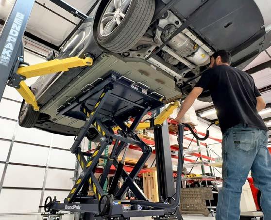 50 BUY ONLINE AND SAVE AT WRENCHERS.COM NEW! EV BATTERY & POWERTRAIN LIFTING SYSTEM BendPak Mobi-EVS EV4000SL Portable EV Battery Lift SKU 5175428 • Platform Capacity - 4,000 lbs. • Max. Platform Height - 75.75" • Overall Length (Handle Stowed) - 65" • Overall Width - 46" • Platform Size - 40" x 60" • Includes 12-Volt Deep Cycle Battery • 12-Volt Power Unit with Pendant • Pallet Jack Steering for Easy Mobility OVER 6 FT. LIFTING HEIGHT WOW! $10,095 SALE PRICE EASY TO USE PENDANT CONTROL EV BATTERY LIFTS DRIVE TRAIN SERVICE EV BATTERY SERVICE SEE IT IN ACTION DUAL HYDRAULIC CYLINDERS