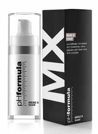 TOOTE TUTVUSTUS JA KLASSIFIKATSIOON MESO X boost on kliiniliselt kõrgetasemeline, koduseks kasutamiseks mõeldud paikne võimendava toimega toode, mis jäljendab mikronõelravi efekti, toetades samal ajal naha sügavat uuenemist, niisutamist ja naha kaitsebarjääri taastamist. Hüdrolüüsitud spikulite ja viie erineva molekulmassiga hüaluroonhappe maatriksiga ülimalt tõhus kontsentraat parandab toimeainete nahaalust imendumist, aitab stimuleerida kontrollitud rakkude uuenemist ning tugevdab mehhaanilisi kahjustusi tekitamata naha struktuuri. MESO X boost on rikastatud biomimeetiliste eksosoomide, fermenteeritud pärmiekstrakti ning kolmekordse hüaluroonhappe kompleksiga, mis sisaldabviieerinevamolekulmassigahüaluroonhapet, millekombineerimiselspikulitegasaavutatakseparem toimeainete imendumine. Väga väikese molekulmassiga hüaluroonhape (HA) (100–600 kDa) tagab sügavniisutuse, samas kui üliväikese molekulmassiga HA (<10 kDa) toetab intensiivset epidermise taastamist. MESO X boost aktiveerib fibroblaste, aitab stimuleerida kollageeni ja elastiini sünteesi, ning toetab naha võimet säilitada niiskust ja kaitset ärritajate vastu. Ideaalne valik patsientidele/klientidele, kellel esinevad varajased vananemismärgid, tundlikkus pärast protseduure või talumatus hapete ja retinoidide suhtes. MESO X boost ühendab kliinikus tehtavad protseduurid ja tulemusliku koduhoolduse. Sobib kasutamiseks kõikide Fitzpatricku fototüüpide puhul ning sobitub sujuvalt retseptipõhisesse hooldusskeemi, pakkudes professionaalsel tasemel, mitteinvasiivse lahenduse naha pikaajaliseksoptimeerimiseks.