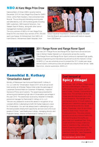 Spicy Village! On February 14th, all Spicy Village outlets will host a duet banquet: a fabulous buffet meant just for couples, with the best of Indian, Chinese, Continental and Arabic food. This will feature all the Spicy Village specials that people have come to look forward to. The highlight of the duet banquet will be 10 mouth-watering desserts as a Valentine’s special, ranging from perennial favourites like Gulab Jamun, Rasamalai, Umm Ali and Omani Halwa to Shahi Kheer, Pecan Date Pudding and more. This extra-ordinary spread is priced at a nominal OMR9.500. The best thing about this buffet you get to treat your sweetheart free. Every couple would like to enjoy a delicious meal on Valentine’s Day, without the hassle of planning and preparing it. This is precisely why we’ve come up with a Valentine’s duet offer,” says Dayaparan, general manager, Spicy village. For reservations call 99224718 Black & White 29