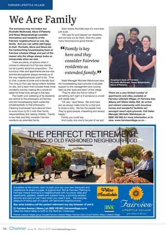 Premier Lifestyle Villages group includes Fairview Lifestyle Village, Fairview Care Ltd and Settlers Albany Lifestyle Village.