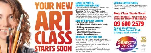 Weekend Art Classes for Beginners –Seasons Art Class Takapuna, North Shore Squash Club, Takapuna 10am