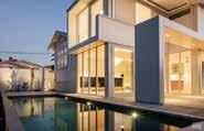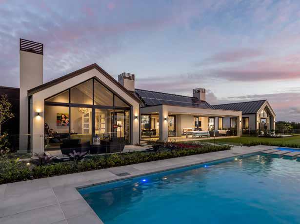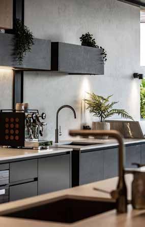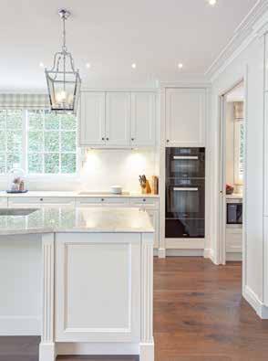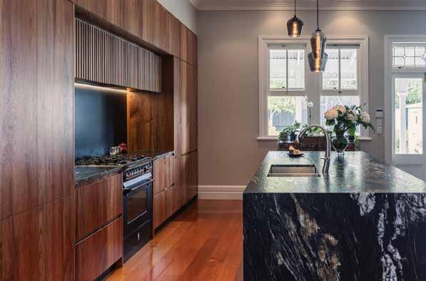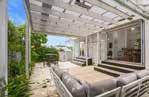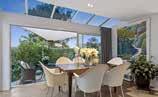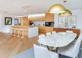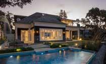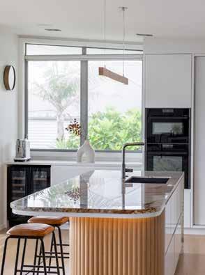 A sunken lounge, with an impressive double-height void, is a superb place to relax and entertain with a feature fireplace and views overlooking the garden to the water beyond. An expansive open kitchen, dining, and informal living space with seamless outdoor flow to louvretec covered terraces, lap pool and outdoor entertaining space. The kitchen beautifully combines timber cabinetry and stone benchtops, with a large central island and a wellequipped butler’s pantry.