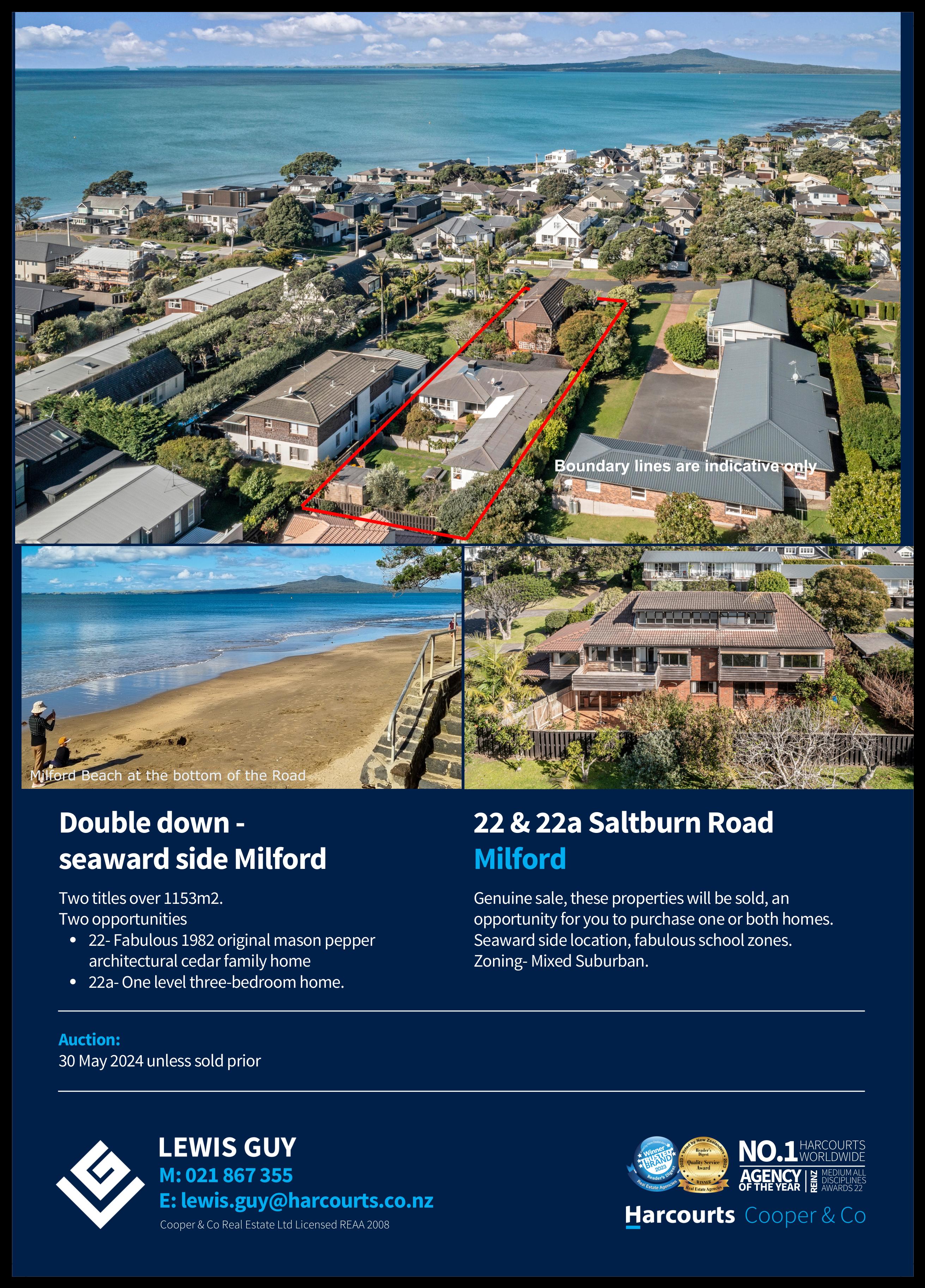 The main house offers three bedrooms, including the master with ensuite and walk-in wardrobe, while a separate one-bedroom granny flat offers flexible living for teenagers or extended family. With lovely open plan living, a wonderful north-facing flow has been created out to decks and gardens making the most of the incredible vista, while on the other side of the house, a sheltered garden and courtyard offer a peaceful retreat. A large internal double garage with an extensive workshop and storage area downstairs completes this amazing package. This property offers huge potential to further re-develop and take advantage of this very special location. Zoned for excellent schooling including Murrays Bay schools and Rangitoto College.