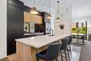 The home offers ground-floor living, with an open plan, kitchen, dining, and main lounge. This space has a 3m stud with ducted central air conditioning and gas fire complete with stunning architectural surround. The kitchen with its dark cabinetry and super white marble bench top, separate bar area and butler's pantry will impress those with entertaining in mind.