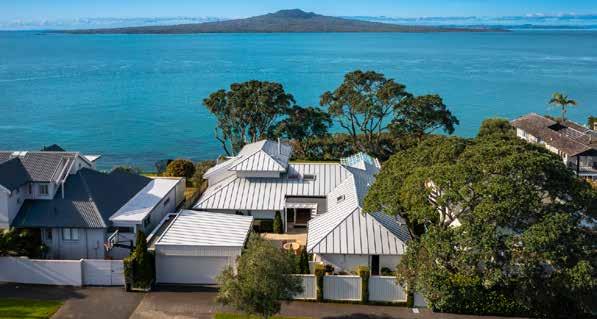 Uninterrupted sea views stretch over the lush, manicured lawns framed by beautiful Pohutukawa trees, creating a picture-perfect setting that captures the very essence of relaxed waterfront living. With its classic “white-on-white” palette, this home radiates understated elegance. Inside, the home features four spacious double bedrooms, including three on the ground floor and a dedicated home office. Two bedrooms and the office enjoy sweeping sea views and flow effortlessly to the outdoors, where expansive cedar bi-fold doors open to a full-width deck.