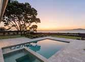 Accommodation-wise, there is a choice of up to six ensuited bedrooms plus a large home office (or five ensuited bedrooms with his and hers ensuites, walk-in robes and two private offices), leaving most families with a surplus of space to sprawl and house guests in complete style. The grand entry foyer with oak heated flooring leads to expansive living spaces framed by panoramic views of Rangitoto Island. A designer kitchen crafted by “Bremich” features a very large island, Bora induction and gas hobs, a pair of Wolf ovens, Liebherr integrated refrigeration and dual wine fridges. The home has two living areas on the main living floor, a lovely blend of relaxed beach, informal living and more formal living rooms to unwind and
